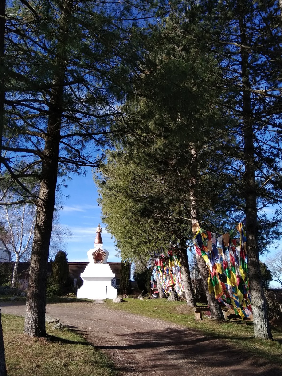 Le stupa abrite traditionnellement des reliques ou contient des objets ayant appartenus au Bouddha mais dans ce cas expose la doctrine bouddhique.